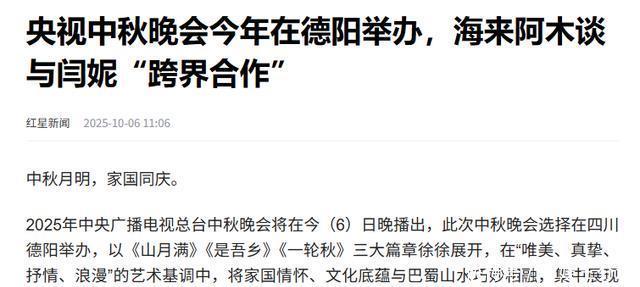 红心新闻:(央视中秋晚会今年在德阳举办,海来阿木谈与闫妮“跨界合作”2025.10.06)